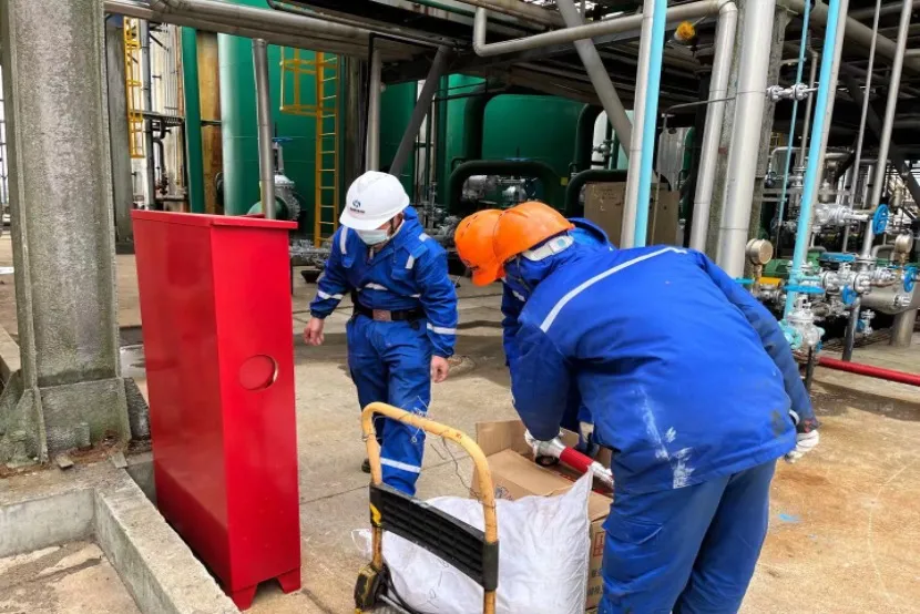 2021年12月26日,隨著壓力管線上最后一塊盲板拆除,標(biāo)志著寧波海靖環(huán)??萍加邢薰狙b置大修工作圓滿收官,裝置正式具備投運生產(chǎn)條件。