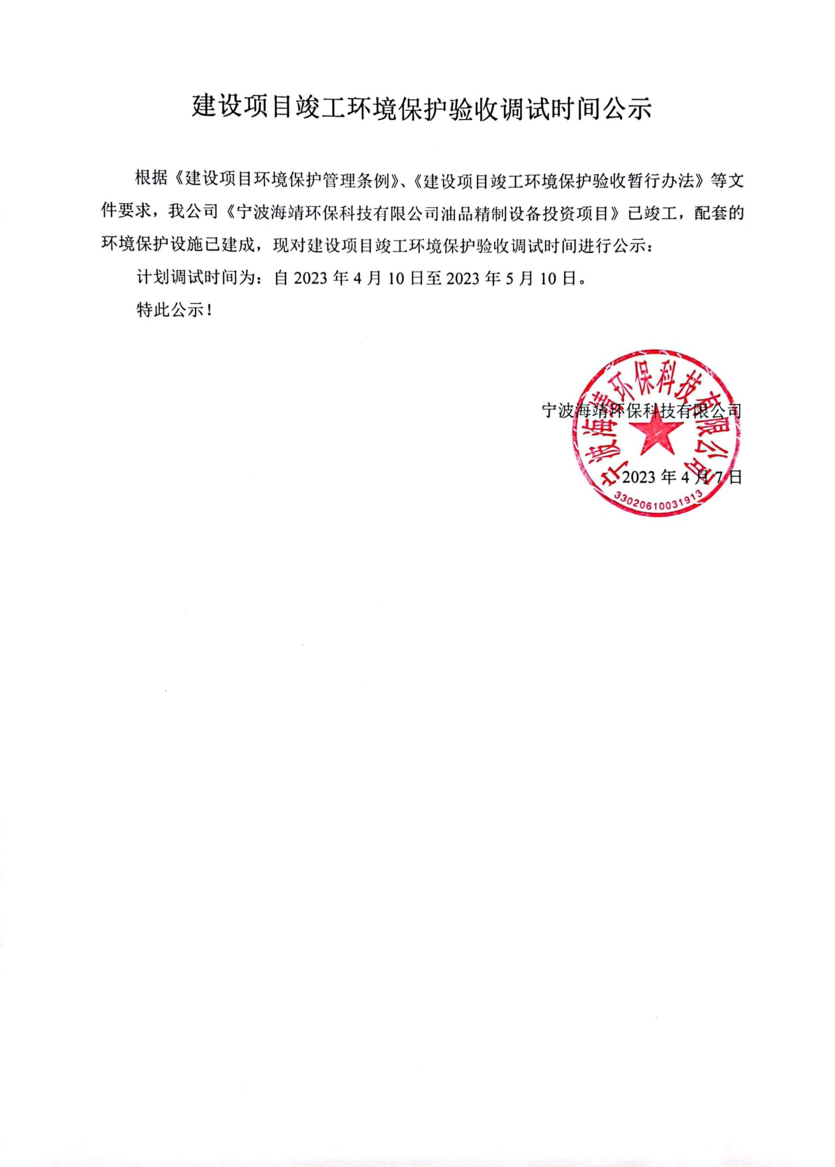建設(shè)項(xiàng)目竣工環(huán)境保護(hù)驗(yàn)收調(diào)試時(shí)間公示