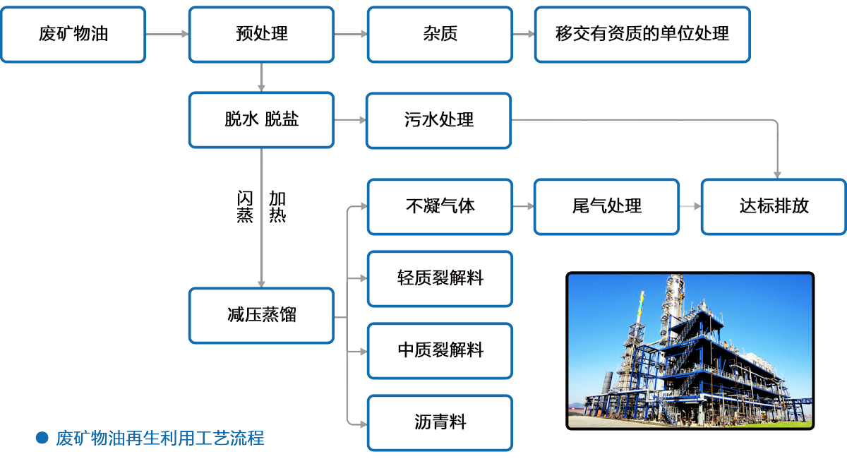 以廢礦物油、油污水為原料,經(jīng)油污水綜合利用裝置處理后,油品通過蒸餾分離提取中質(zhì)裂解原料、重質(zhì)裂解原料、建筑瀝青和燃料油等高附加值化石原料。分離出來的廢水則通過廢水處理場進(jìn)行綜合處理后,達(dá)標(biāo)排放。儲存、生產(chǎn)、廢水治理所產(chǎn)生的廢氣全部進(jìn)行回收集中處理,通過組合式生物除臭設(shè)備處理后的廢氣,可滿足最新版國際和國家標(biāo)準(zhǔn)《惡臭污染物排放標(biāo)準(zhǔn)》GB14554-1993。